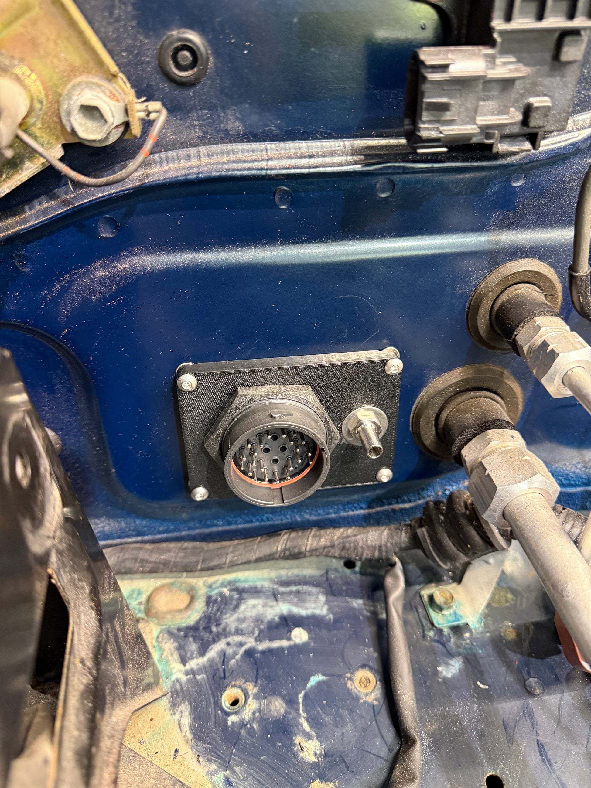 These will come pre-assembled with the Deutsch Connector and Vacuum Passthrough bolted to the plate, and will include a cutting template so you know exactly how much of your firewall to cut away without leaving unsightly gaps but still clearing all of the hardware. It will also include all of the pins required and the mating connector. You will need a Deutsch connector crimping tool, but they can be found on Amazon for less than $20.
