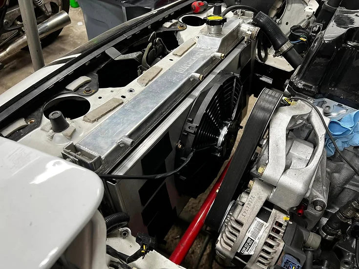 Upgrade your Miata's cooling system with our NA Miata Radiator Fan Shroud, expertly designed to fit 90-97 Miatas flawlessly with the stock or Mishimoto radiator. Engineered for enhanced functionality, this shroud creates additional space for intercooler piping on both sides of the engine bay, ensuring optimal performance in any driving condition.
